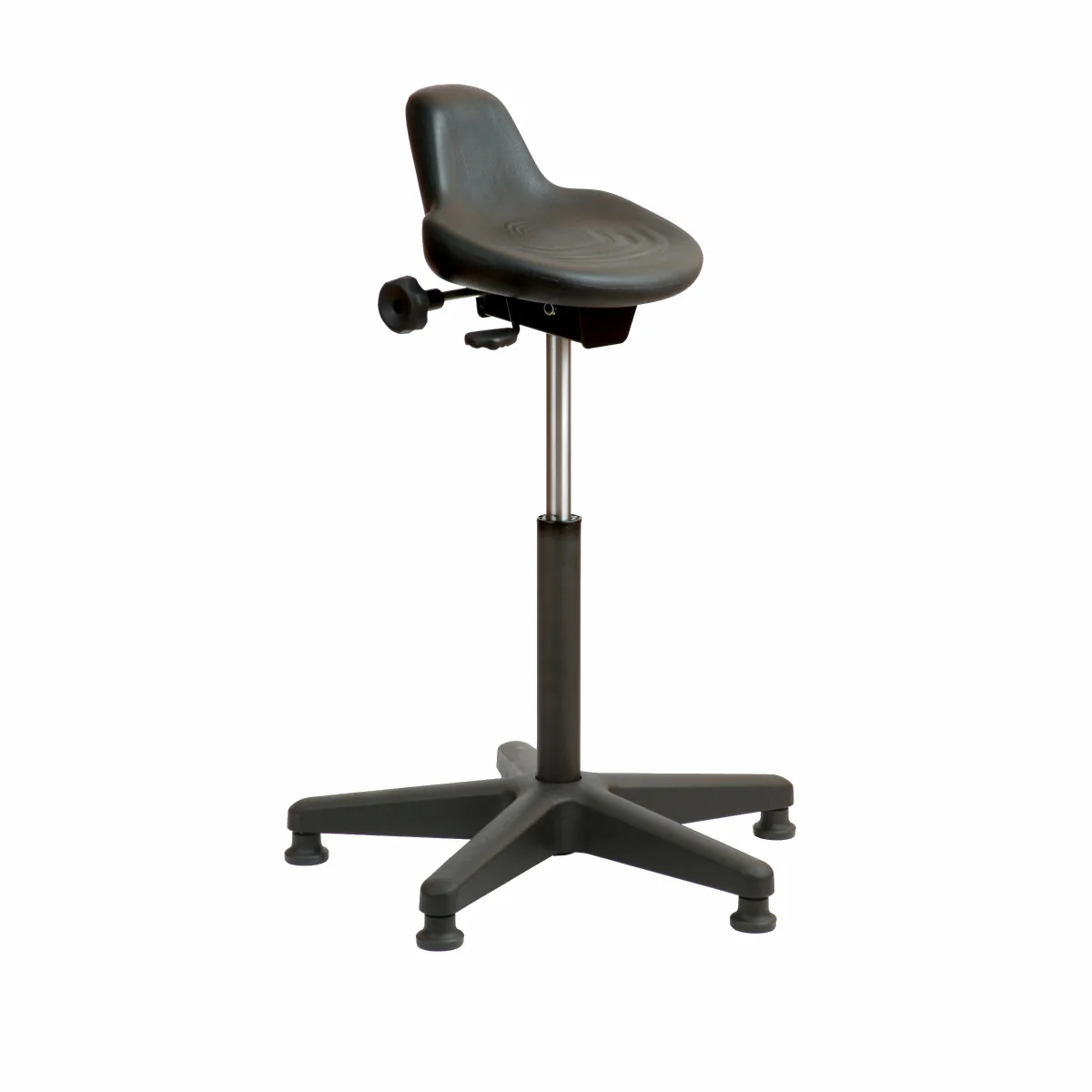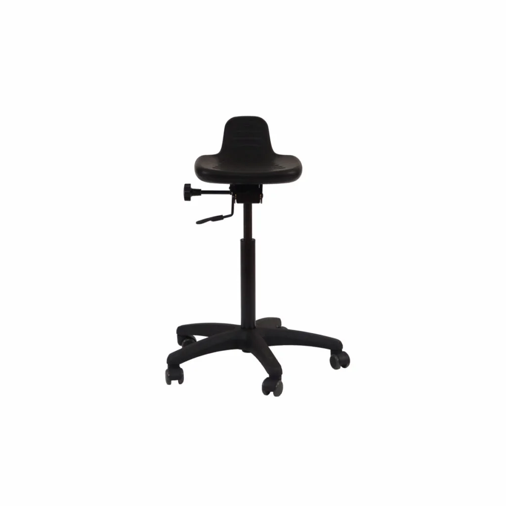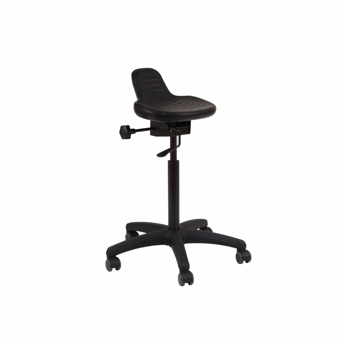 Arbeidsstol med integralskum i setet. Justering av setevinkel. Leveres med høy lift, hjul eller glidere. Sittehøyde: 52 – 78 cm