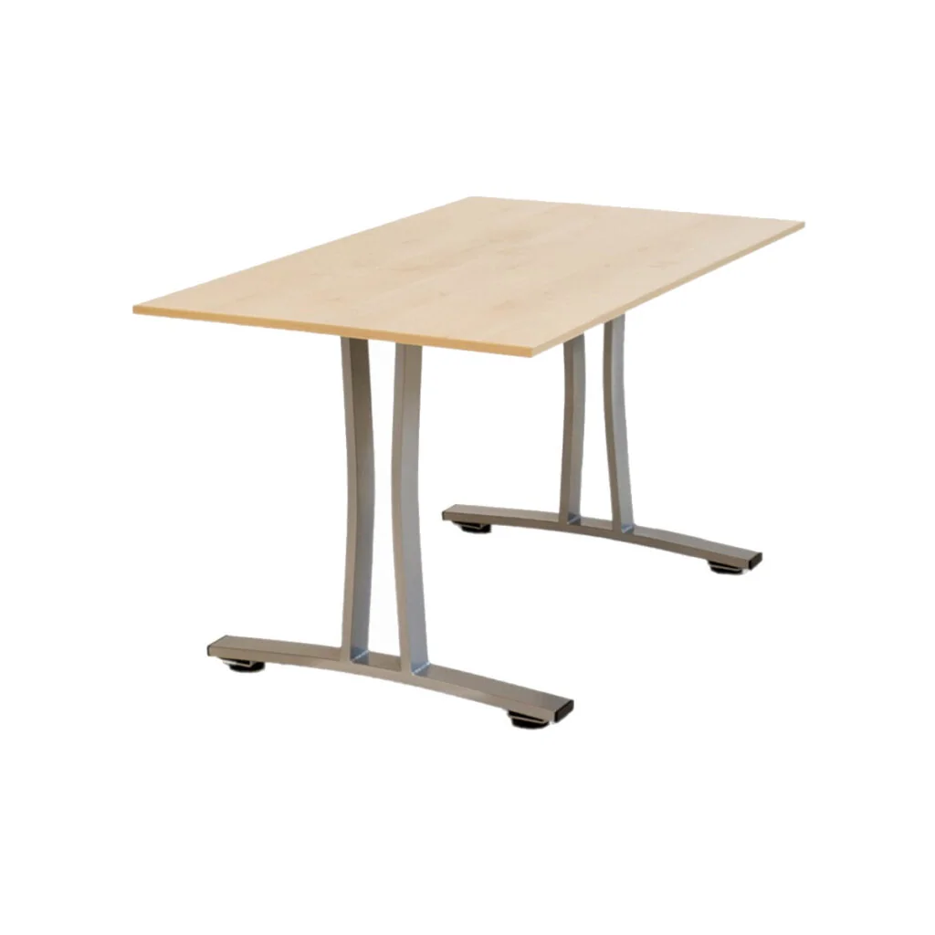 Et solid bord med ekstra kraftig understell og langsgående stålsarg under bordplaten. Standard utførelse i sort eller krom understell. Bordplate i eik, sort, hvit eller grå laminat. Andre farger og dimensjoner på forespørsel. Leveres med kryss eller T-fot.