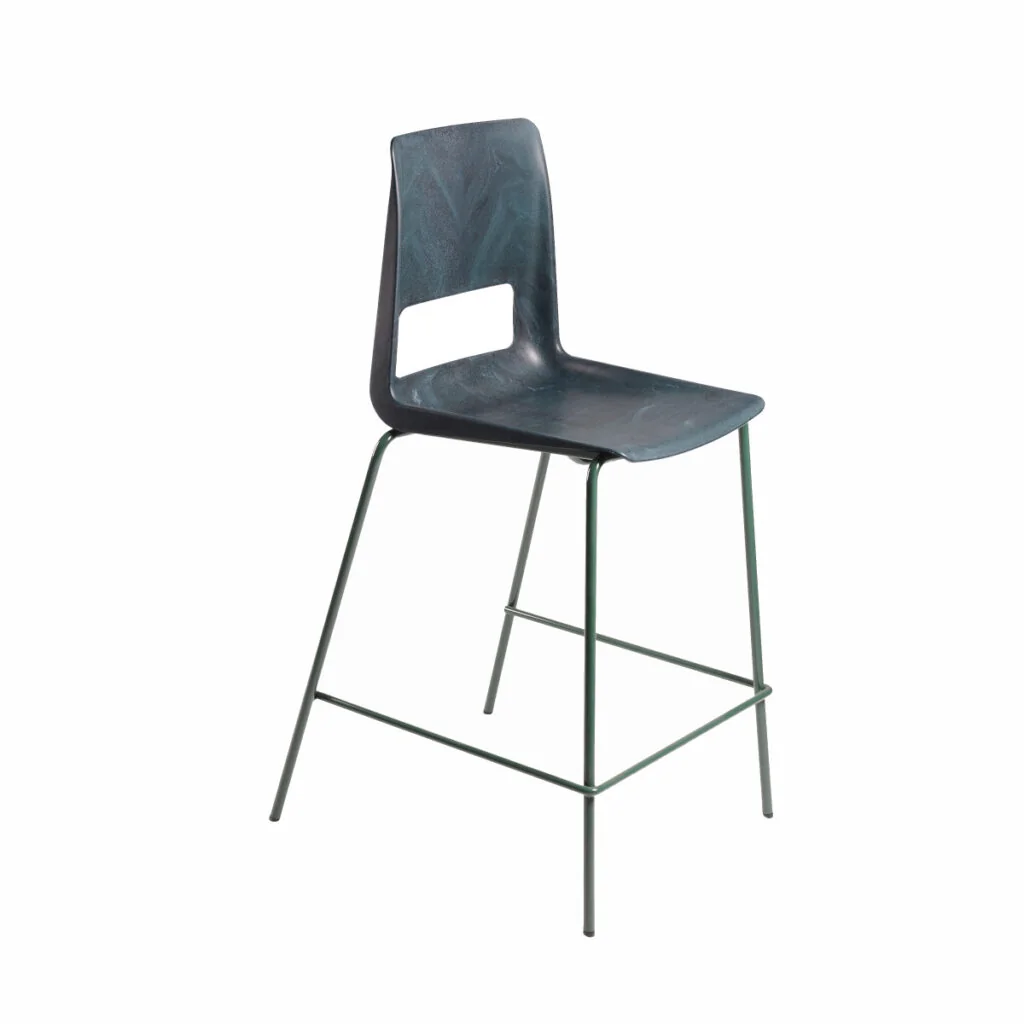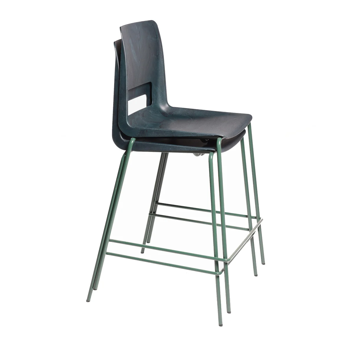 S-1500 Barstol leveres i NCPs resirkulerte Ocean fargepalett. Stolen leveres i to sittehøyder, 60 eller 80 cm. Med lakkert bein i sort eller silver (ral 9006) som standard. Kan også fås med matchende understell.